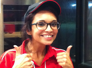 She works at the Pizza Hut.